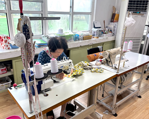 의류와 생활소품 등을 제작·수선하며 봉제 기술을 습득